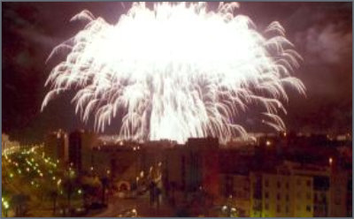 disparando cohetes y fuegos artificiales en honor